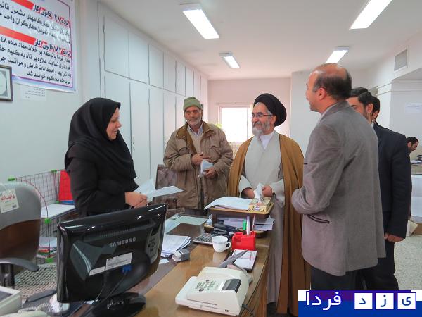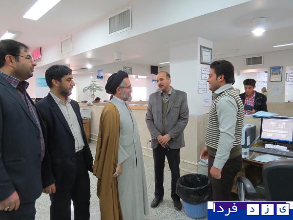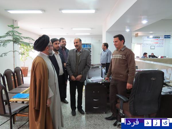 ابرکوه خبرنگار یزد فردا مهدی کارگر"گزارش تصویری دیدارحجت الاسلام والمسلمین سید ابراهیم حسینی امام جمعه ابرکوه به اتفاق سرهنگ ابراهیمی فرمانده ناحیه مقاومت بسیج ابرکوه ، مهندس حاتمی مدیر جهاد کشاورزی ،مهندس آخوندی بخشدار مرکزی ابرکوه با مهندس عباس حمیدی زاده رئیس و کارکنان تامین اجتماعی ابرکوه دیدارو از نزدیک با فعالیتهای تامین اجتماعی شعبه ابرکوه آشنا شدند .