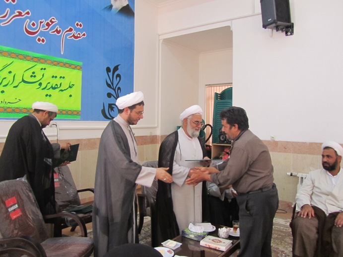در پايان امام جمعه و رئيس اداره تبليغات اسلامي با اهداء لوح تقدير از زحمات برادران و خواهران تشکر نمودند.