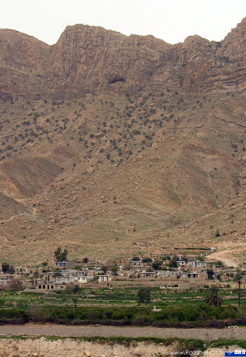 نمای روستای شاپور از دهانه غار