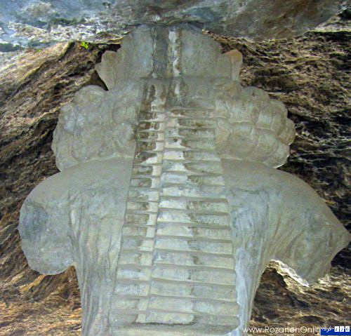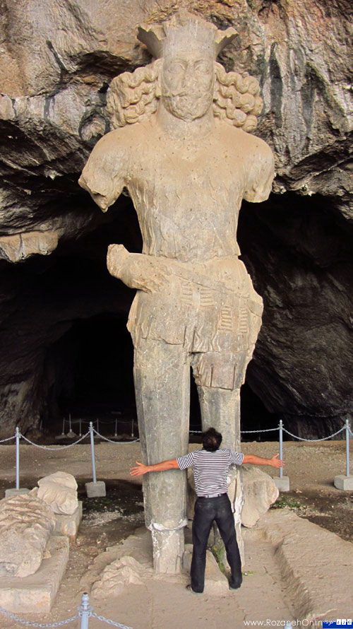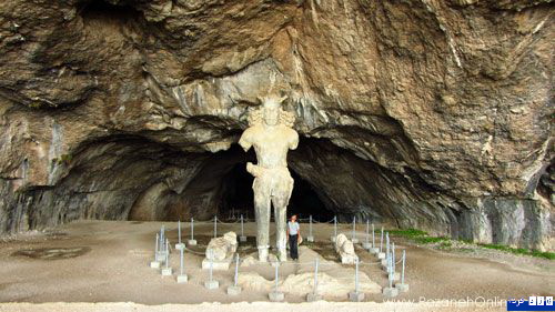در عمق تقریباً 20 متری دهانه غار، تندیس بزرگی از شاپور اول ساسانی دیده میشود که با گذشت حدود 1700 سال همچنان ابهت پادشاه قدتمند ساسانی را به نمایش میگذارد.