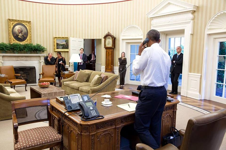 یزدفردا : کاخ سفید تصویری از باراک اوباما، رئیس جمهور آمریکا منتشر کرده که او را هنگام دریافت خبر توافق هسته ای نشان می دهد.
