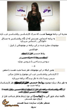 در وبگردی های دیگر صورت گرفته از سوی خبرنگار این گروه ، اسناد دیگری در فضای مجازی و از دیگر عوامل این شبکه ضد اخلاقی و ضد دينی بدست آمده است که حکایت از رواج انحطاط اخلاقی در این شبکه و اعتقاد راسخ مدیران و مجریان آن به فرقه ضاله بهائیت دارد.