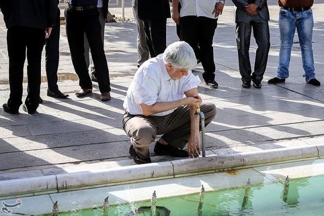 وضو گرفتن یک کاندیدا کنار حوض/عکس