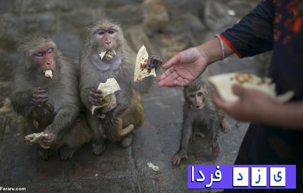 میمون هایی که نان تافتون می خورند البته با همت زن نپالی!!!تصاویر
