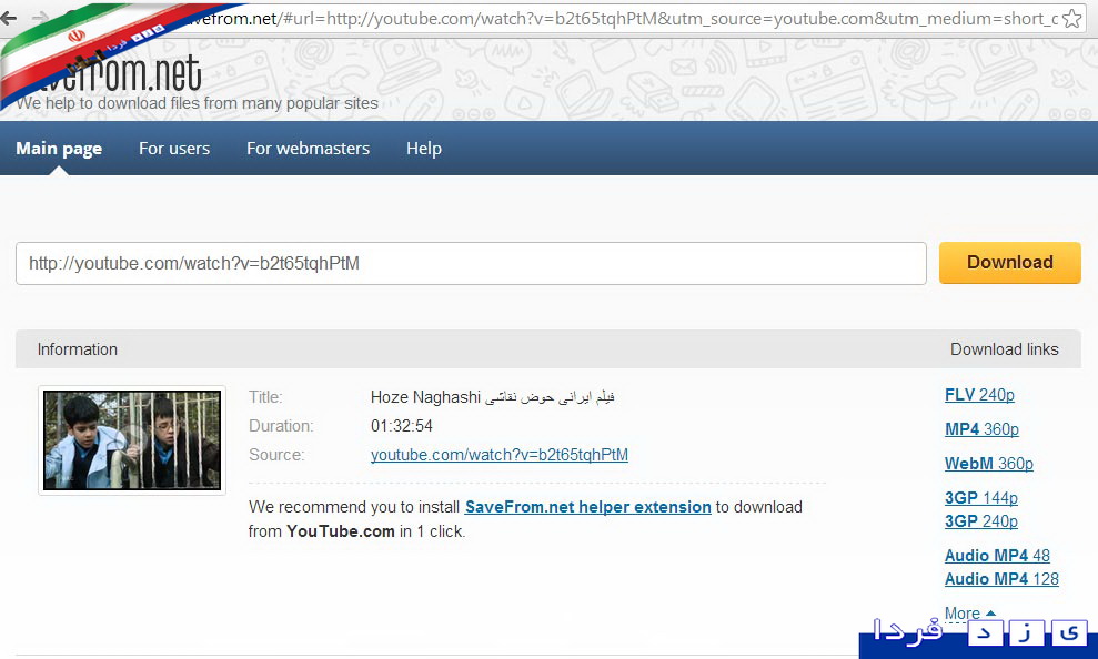 حالا در صفحه جدید باز شده امکان دانلود برای شما فراهم شده در گوشه سمت راست صفحه هم هر نوع فرمتی که بخواهیم دانلود کنیم می توانیم انتخاب کنیم. مطابق شکل زیر: