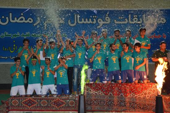 در بازی فینال و شب پایانی مسابقات جام رمضان و در حضور مدیران ورزش استان و مسؤولین شهرستان به ویژه امام جمعه و فرماندار محترم شهرستان، کاشی احسان آریا الف با پیروزی 3 بر 0 مقابل تیم همنام خود در رده بزرگسالان بر سکوی نخست ایستاد.