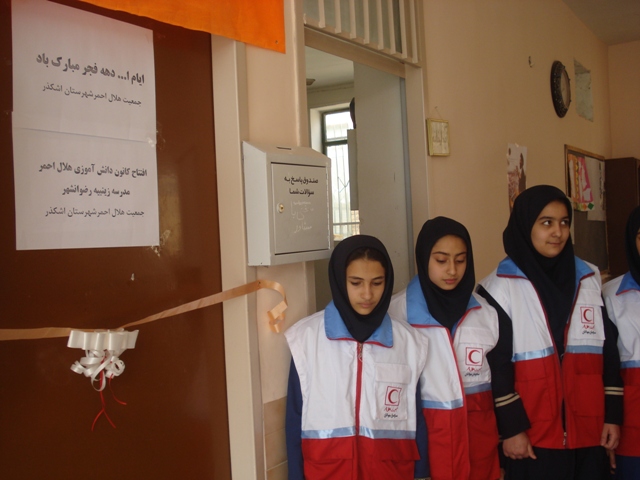 رئیس جمعیت هلال احمر شهرستان اشکذر خبر داد : کانون دانشآموزی جمعیت هلالاحمر به مناسبت پیروزی شکوهمند انقلاب اسلامی و دهه مبارک فجر، افتتاح شد