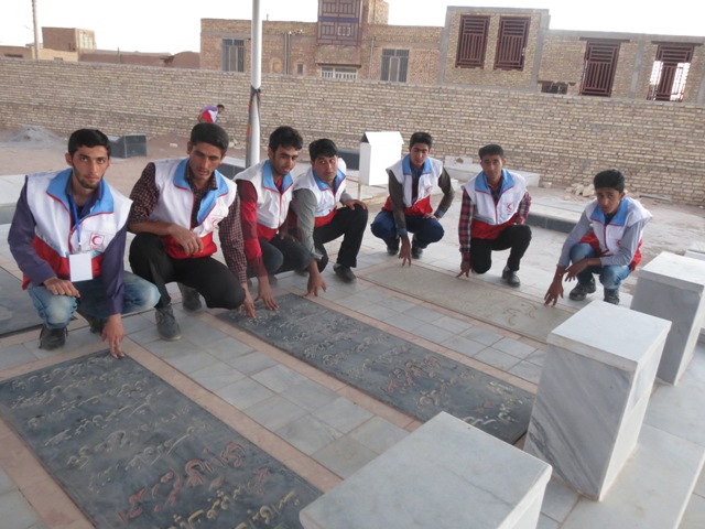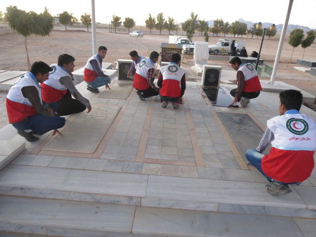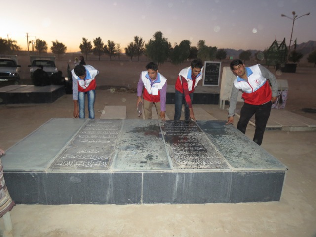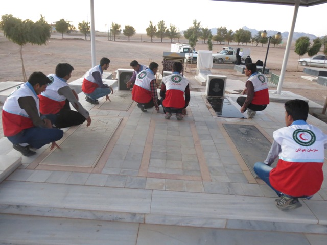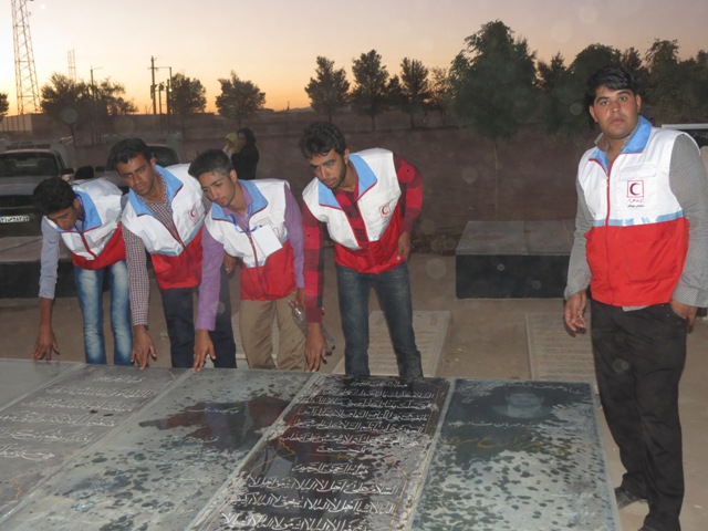 به گزارش روابط عمومی جمعیت هلال احمر استان یزد ؛ در نخستین روز دهه فجر جمعی از جوانان جمعیت هلال احمر شهرستان خاتم با حضور در گلزار شهدای این شهرستان ، ضمن غبارروبی و عطرافشانی مزار شهدا، با آرمانهای شهدا تجدید میثاق کردند.