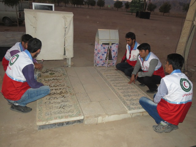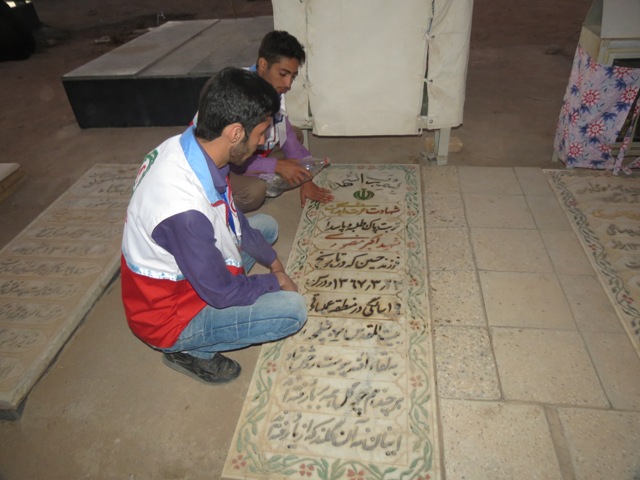 در نخستین روز دهه فجر و با حضور جمعی از جوانان جمعیت هلال احمر شهرستان خاتم، گلزار شهدای این شهرستان به مناسبت دهه فجر غبار روبی و عطرافشانی شد.