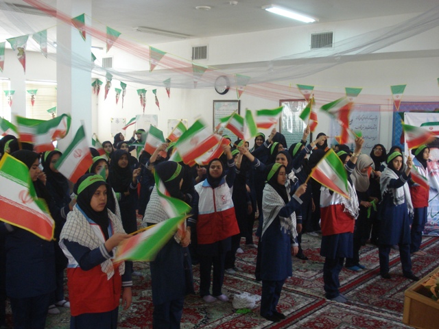 نواختن زنگ انقلاب در مدرسه دخترانه نمونه الزهرا صدر آباد رستاق با حضور اعضاء جوانان جمعیت هلال احمر نواخته شد .
