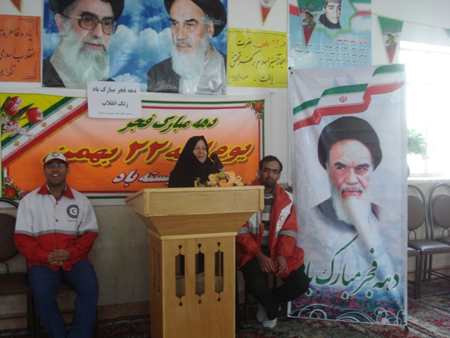 نواختن زنگ انقلاب توسط سرکار خانم شهرستانی رئیس جمعیت هلال احمر اشکذر نواخته شد