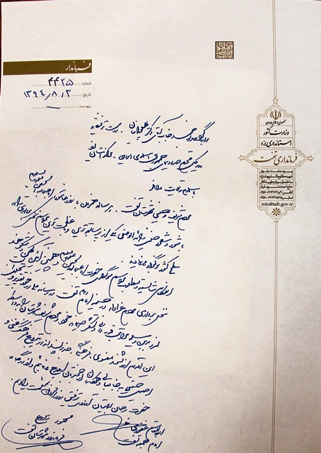 انعکاس شایسته و مطلوب مراسم سوگواری حضرت اباعبدا... الحسین(ع) و همچنین آیین کهن و شکوهمند نخل برداری مردم عزادار این سامان در رسانه ملی در خور تقدیر و تجلیل است. لذا بدین وسیله مراتب قدردانی و تشکر صمیمانه مردم شریف شهرستان را به واسطه این اقدام ارزشمند معنوی، فرهنگی و خداپسندانه در ترویج فرهنگ غنی و اصیل حسینی به جنابعالی و همکاران محترمتان ابلاغ می نماییم و از درگاه حضرت رحمان برايتان آرزوي توفيق روزافزون مسئلت داريم.