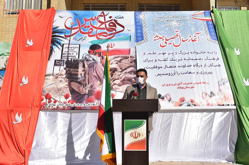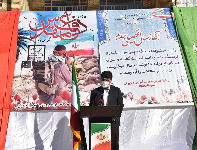 مدیرآموزش وپرورش بهاباد روز شنبه درمراسم آغاز سال تحصیلی 1401-1400 دانس آموزان با تبریک هفته دفاع مقدس وگرامیداشت یاد وخاطره شهدای دفاع مقدس وآغازسال تحصیلی جدید با بیان اینکه سلامت دانش آموزان از اولویت مهم اداره آموزش وپرورش بهاباد میباشد اظهارداشت : بازگشایی مدارس با رعایت پروتکلهای بهداشتی همراه است و حفظ سلامتی و جان دانشآموزان در اولویت قرار دارد.