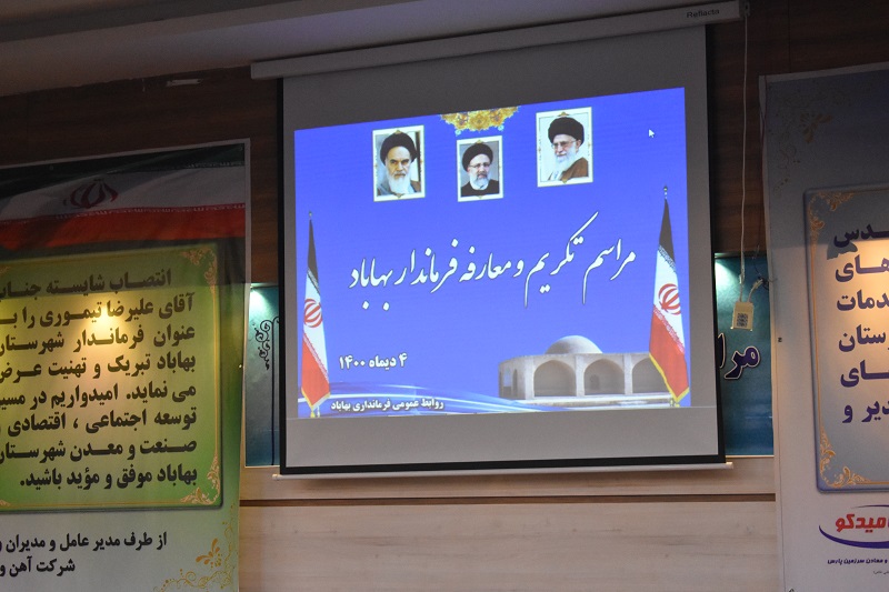 علیرضا تیموری شنبه شب طی مراسمی با حضور معاون سیاسی، امنیتی و اجتماعی استانداری یزد وجمعی از مسئولان استان وشهرستان وامام جمعه به عنوان سرپرست جدید فرمانداری شهرستان بهاباد معرفی و از تلاش های مهندس محمد مهدی خانی زاده بهابادی فرماندار سابق این شهرستان تقدیر شد.
