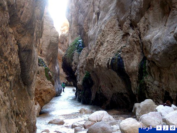 مبدا آبی که اغلب مزارع و باغات طبس را مشروب می کند و از طریق نهر آبی به طبس منتقل می شود از این ناحیه منشاء می گیرد. بعد از طی مسافت پنج کیلومتر جاده خاکی بوسیله خودرو در محلی بنام چشمه جعفری توقف می کنیم . پیاده روی ازاین ناحیه آغاز می شود و از راه باریکی به داخل دره می رویم. در داخل این دره (کال) آب چشمه ها جاری است که نهر طبس را می سازد . برای رسیدن به چشمه آب گرم می بایست در جهت خلاف آب مسیر را طی نمود.