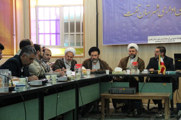 گفتنی است :در این جلسه حجت الاسلام مدیح امام جمعه شهرستان تفت و حجت الاسلام یحیی زاده نماینده مردم تفت و میبد در مجلس شورای اسلامی ،مدیران و اعضای شورای اداری شهرستان حضور داشتند .