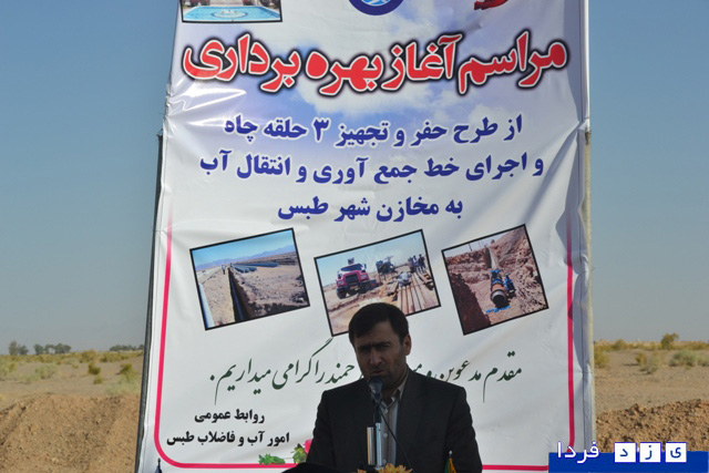 یزدفردا: همزمان با هفته دولت سه حلقه چاه و خط جمع آوري و انتقال آب به مخازن شهر طبس با حضور معاون عمراني استاندار و جمعي ديگر از مسئولين شهر طبس و مسئولين آبفاي استان يزد به بهره برداري رسيد.
