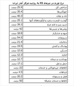 در گزارش مرکز آمار ایران تصریح شده است: شاخص گروه عمده "کالاهای غیرخوراکی و خدمات" در تیرماه 91 به رقم 398.5 رسید که 2.5 درصد نسبت به ماه قبل افزایش نشان میدهد.