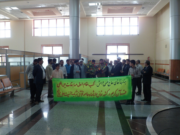 به گزارش روابط عمومی اداره کل اوقاف و امور خیریه استان یزد، مراسم استقبال از استاد حاج حسن دانش قاری برجسته استان یزد و نفر اول مسابقات بین المللی قرآن کریم تونس ظهر امروز با حضور مهدی تقوایی مدیر کل سیاسی استانداری، مهدی خاوری معاون اداره کل اوقاف و امور خیریه استان ، مسئولین و جامعه قرآنی استان یزد برگزار شد .