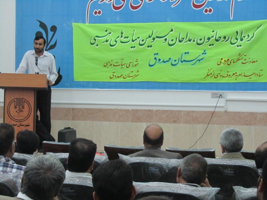 در آستانه ماه محرم گردهمايي مسئولين هيئات مذهبي، روحانيون و مداحان در اداره تبليغات اسلامي صدوق با حضور نماينده مردم صدوق در مجلس شوراي اسلامي و جمعي از مسئولين شهرستان برگزار شد.