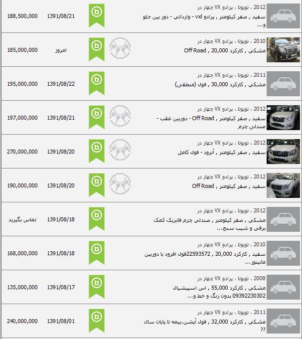 بر اساس همین آمار ارزش دلاری این خودرو 18248 دلار (1226)می باشد و با توجه به قیمت هایی که در آگهی ذیل مشاهده می کنید به نظر شما سود حاصل از واردات فقط یکدستگاه خودرو پرادو چند میلیون تومان می باشد ؟