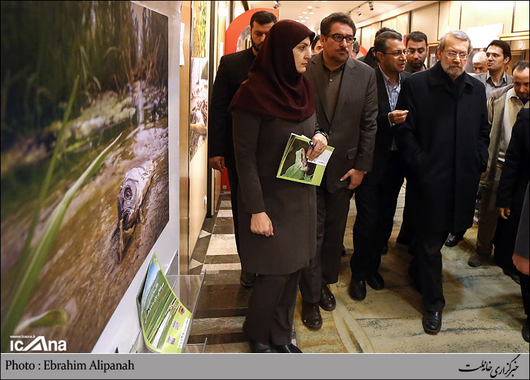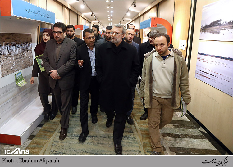 علی لاریجانی صبح امروز به همراه محمدرضا تابش رئیس فراکسیون محیط زیست و توسعه پایدار مجلس و جمعی ازنمایندگان و مسئولان سازمان حفاظت محیط زیست با حضور در تالار آفتاب از نمایشگاه تالاب ها بازدید کرد.
