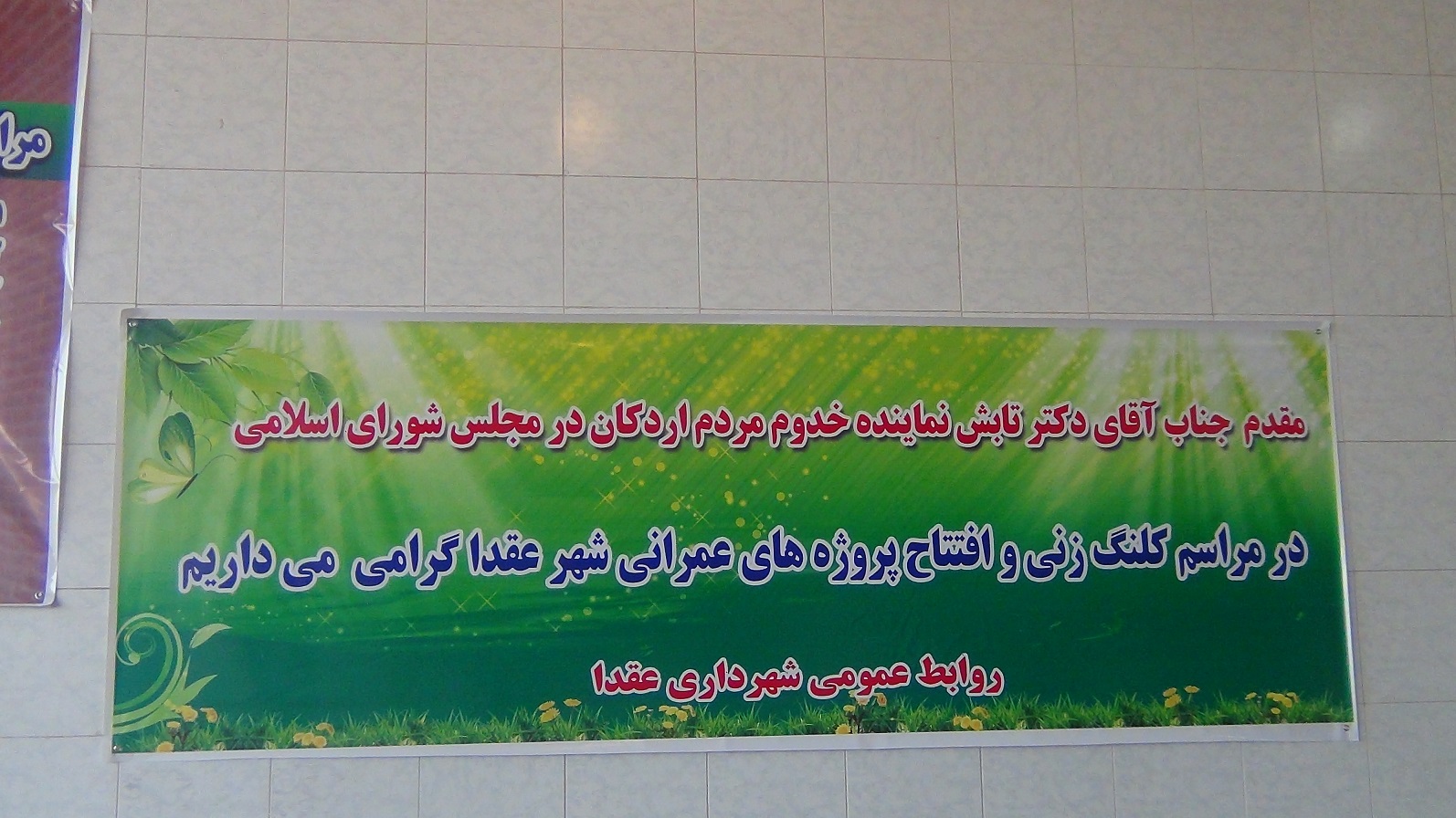 نماینده مردم اردکان در مراسم افتتاح و کلنگ زنی پروژه های عمرانی شهر عقدا با بیان اینکه امروز شهر ها و روستاهای شهرستان اردکان از حیث اجرای پروژه های عمرانی و تامین عمده زیرساختها برای توسعه سایر بخش ها آماده اند گفت: طی دو سال گذشته شهرداری عقدا 1:6 میلیارد تومان و دهیاریهای بخش عقدا بالغ بر 5:7 میلیارد تومان از محل عوارض عایدی داشته اند .