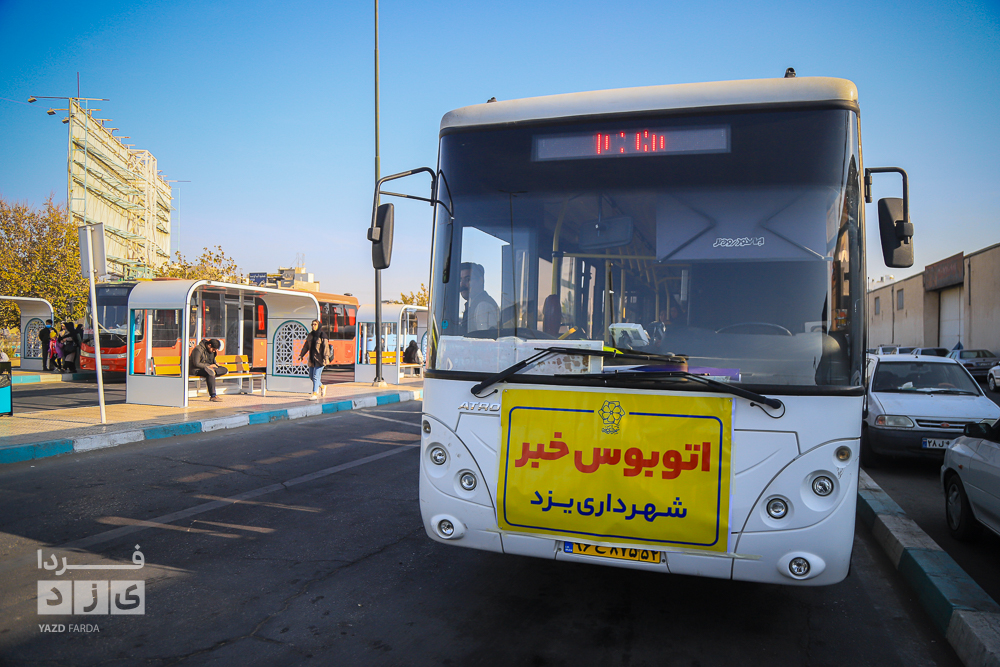 اتوبوس خبر شهرداری یزد در ایستگاه سازمان عمران و بازآفرینی فضاهای شهری و سازمان فاوا