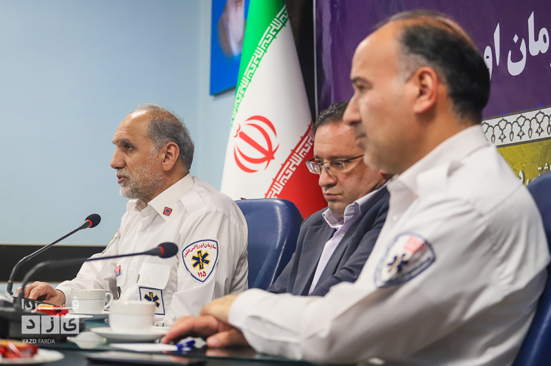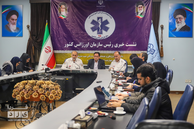 نشست خبری دکتر «جعفر میعادفر» رئیس سازمان اورژانس کشور به همراه دکتر «احمد دهقان» رئیس سازمان اورژانس و دکتر «عمیدالدین خطیبی» رئیس دانشگاه علوم پزشکی یزد روز چهارشنبه 5 بهمن ماه با حضور اصحاب رسانه برگزار شد.