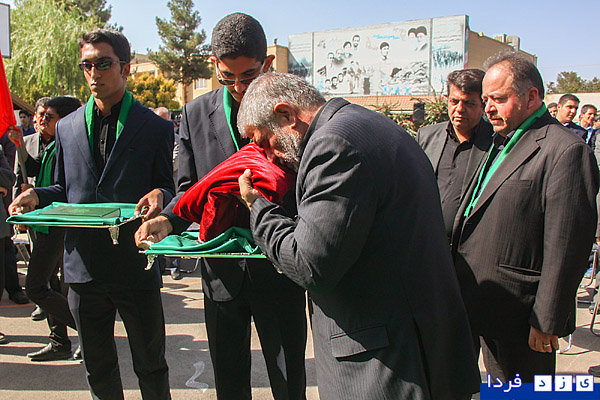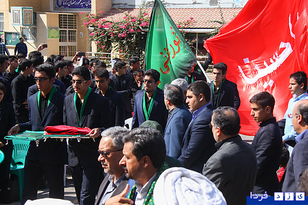 گزارش تصویری/ برافراشتن پرچم متبرک حضرت اباعبدالله الحسین(ع) در دبیرستان پسرانه شاهد شهید رمضان زاده