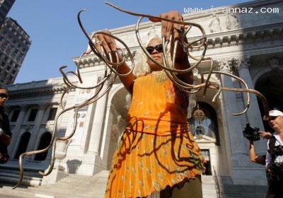 عکس هایی از بلندترین ناخن های جهان مربوط به یک خانم تقریبا بیکار !