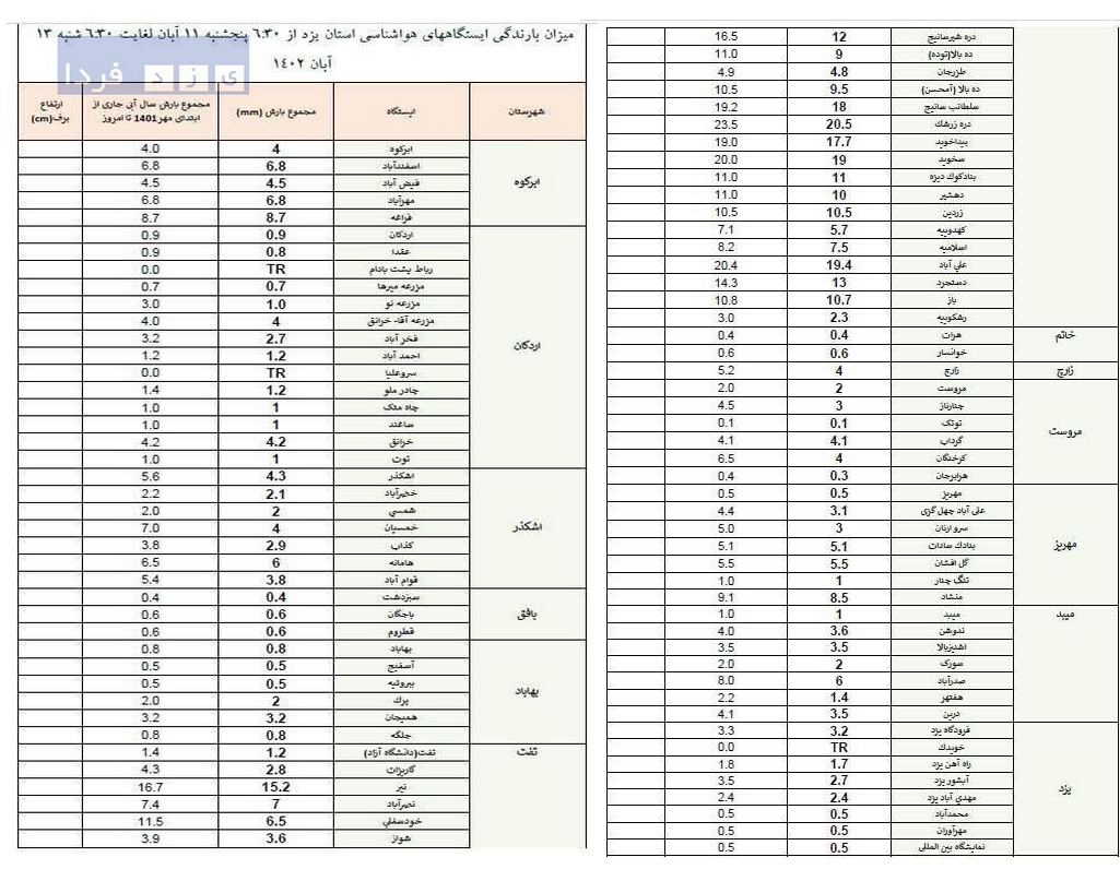بارش ۴۸ ساعته استان مورخ ۱۴۰۲/۰۸/۱۳