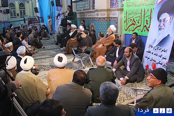 گزارش تصویری /سفر آیت الله العظمی سبحانی به یزد (13)-اقامه نماز جماعت،دیدار مردمی و سخنرانی آیت الله العظمی سبحانی در امامزاده سید محمد جعفر یزد