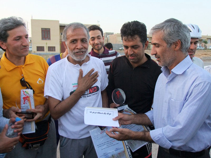دوچرخه سواران مسافت 20کیلومتری در جاده روستای خرو را رکاب زدند،در این مسابقه وثوق ابراهیمی مقام اول ،دکتر مهدی اخوان صفار مقام دوم وعلی رضا مرادیان مقام سوم را کسب کردند که بر هرکدام این نفرات جوایز ارزنده ای اهداء شد.
