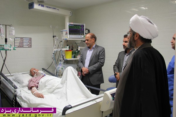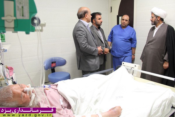 فرماندار يزد با حضور در بيمارستان حضرت سيد الشهداء (ع) يزد از آيت ا... ميرزا حسن ابوترابي عيادت كرد.