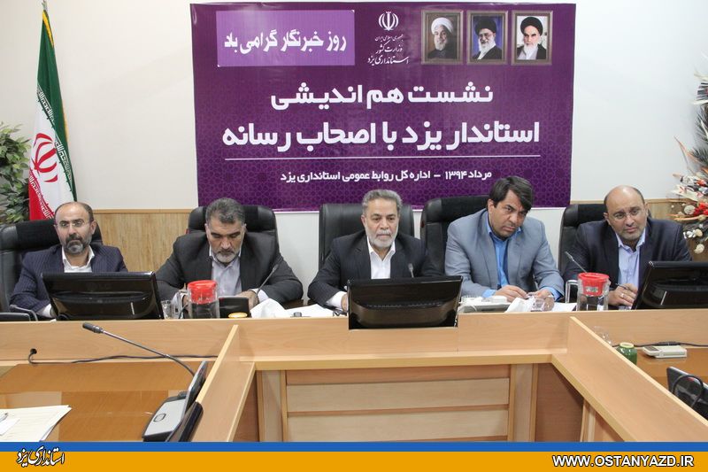 به گزارش واحد دریافت پایگاه خبری یزدفردا " به مناسبت روز خبرنگار نشست صمیمی هم اندیشی استاندار یزد با اصحاب رسانه عصر روز یکشنبه 18 مرداد ماه در محل سالن زنده یاد حمیدیا و با حضور معاونین استاندار، مدیران کل حوزه استاندار و روابط عمومی و بیش از 50 تن از اصحاب رسانه و خبرنگاران استان برگزار شد.