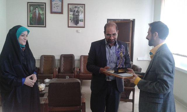 به گزارش روابط عمومي صدا و سيماي مركز يزد " علی محمد پارساییان مسول سازمان بسیج هنرمندان یزد با حضور درصداوسیما ضمن دیدار با دکتر احمد پهلوانیان مدیرکل این مرکز با اهدا لوح تقدیر وتندیس چهاردهمین همایش فصلی اوج هنر از زحمات وی وهمکاران پرتلاش صداوسیما دراهتمام به برگزاری کارگاه شعر بسیج تقدیر وتشکر نمودن.دراین دیدار عالیه محرابی از شاعران بنام یزدی نیزحضورداشتند.