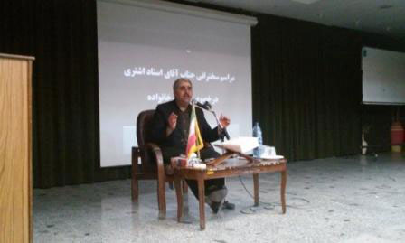 اين مراسم با سخنران آقاي دكتر اشتري همراه بود كه ايشان در سخنراني خود گفت: خانواده همیشه و همه جا و در بین تمامی جوامع بشری به عنوان اساسیترین نهاد اجتماعی زیربنای جوامع و منشاء فرهنگها، تمدّنها و تاریخ بشر بوده است كه پرداختن به این بنای مقدّس بنیادین و حمایت و هدایت آن به جایگاه واقعی و متعالی خود، همواره سبب اصلاح خانوادة بزرگ انسانی و غفلت از آن موجب دور شدن بشر از حیات حقیقی و سقوط به ورطة هلاکت و ضلالت بوده است