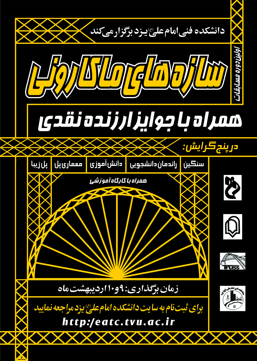 نخستین دوره مسابقات ملی سازه های ماکارونی دانشکده فنی امام علی (ع) یزد در اردیبهشت ماه سال جاری برگزار خواهد شد.