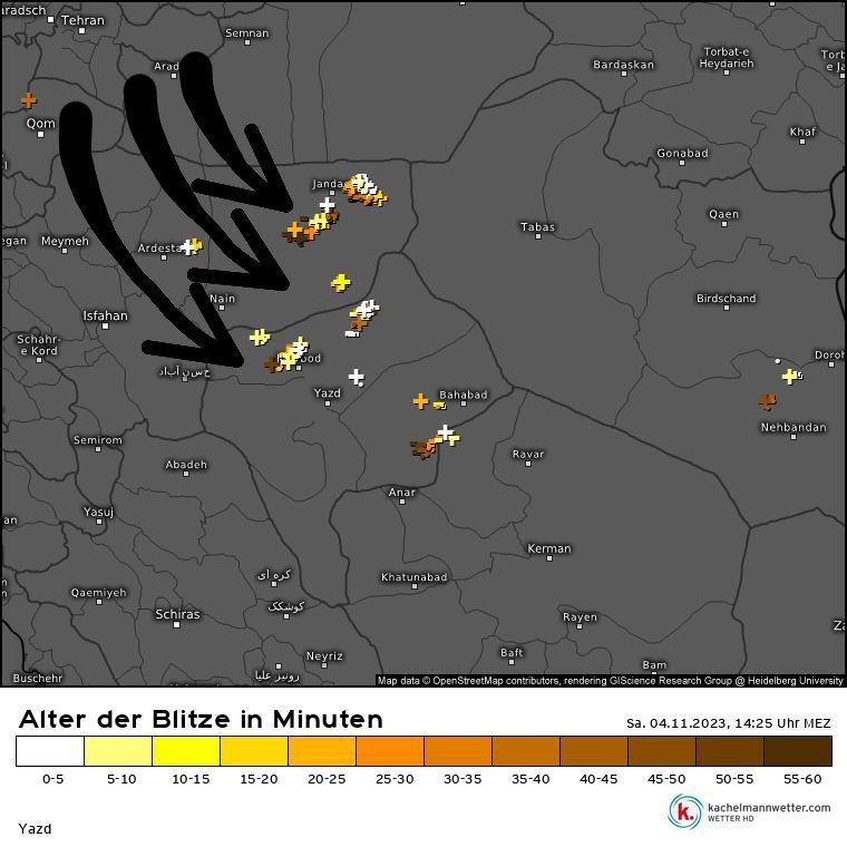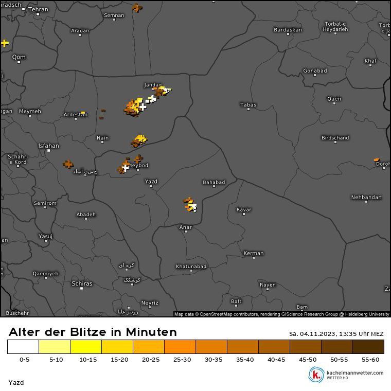 هم اکنون از برخی نقاط میبد و اردکان بارش رگباری گزارش شده است.