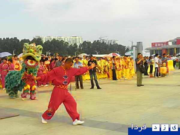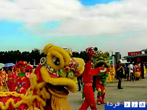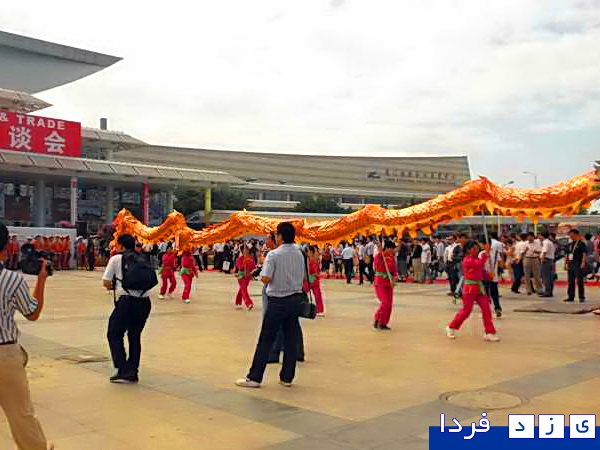 مراسم افتتاحیه نمایشگاه در محوطه بیرونی (مراسم سنتی رقص اژدها)