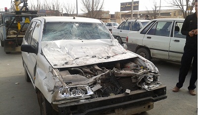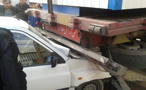 یزد : حمید رضا عمادی : خبرنگار یزد فردا : ظهر امروز اتومبیل پراید با یک دستگاه تریلر پارک شده در کنار خیابان برخورد کرد