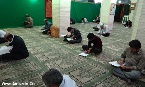 اين امتحان كه به عنوان ميان ترم، از مباحث 8 جلسه اول كلاس و به صورت تشريحي طرح شده بود؛ در حسينيه و مسجد ارگ برگزار شد و محكي بود براي اينكه دانشپژوهان شركت كننده در اين دوره سطح اطلاعات خود را سنجيده و براي ادامه كلاس آمادگي بيشتري كسب كنند.