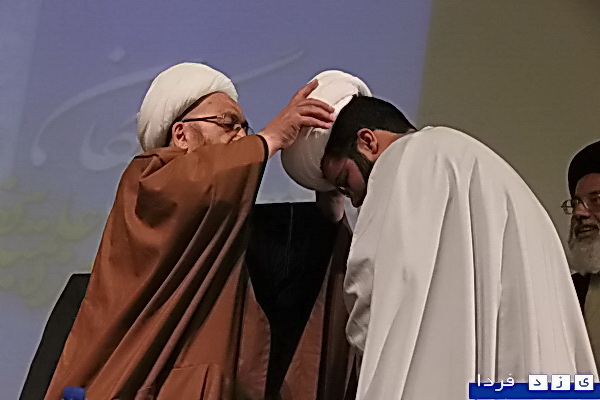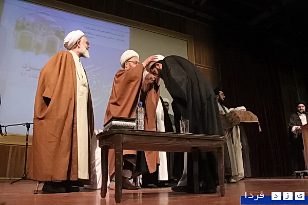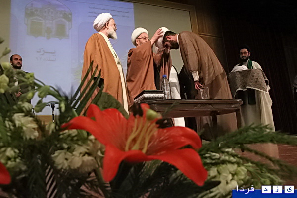 مراسم عمامه گذاری طلاب حوزه علمیه یزد و تجلیل از ممتازین حوزه علمیه یزد با حضور حضرت آیت الله العظمی جعفر سبحانی در سالن هلال احمر یزد برگزارشد .