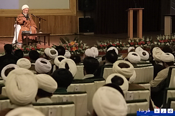 مراسم عمامه گذاری طلاب حوزه علمیه یزد و تجلیل از ممتازین حوزه علمیه یزد با حضور حضرت آیت الله العظمی جعفر سبحانی در سالن هلال احمر یزد برگزارشد .