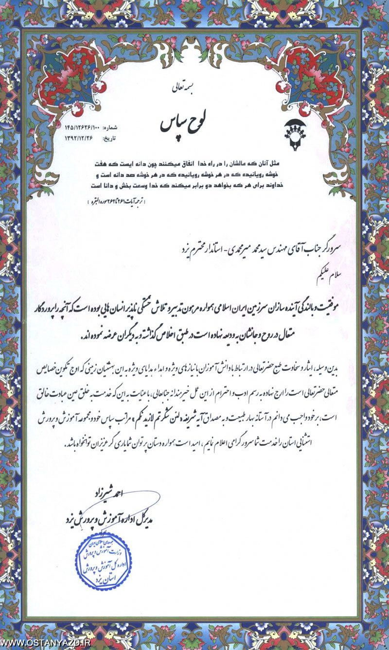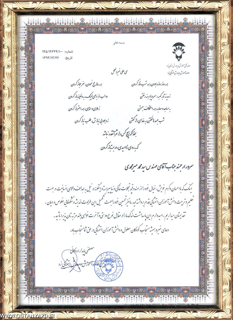 مدير كل آموزش و پرورش استان در پي اهدا هداياي استاندار يزد به كودكان استثنايي از وي تقدير كرد.