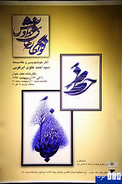 یزدفردا :نو نگارهای خط و نقش  آثار خوشنویسی و نقاشیخط سید احمد علوی ابرقویی  در نگار انه هفت خوان بر پا شد .