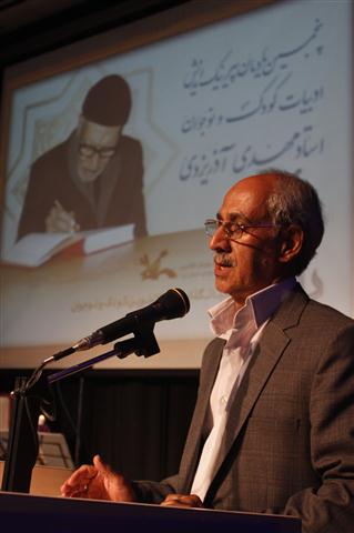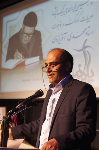 وی عصارهی زندگی آذر را در کلمه "عشق" خلاصه کرد و گفت: استاد آذریزدی، عنوان "بنیانگذار ادبیات کودک و نوجوان" را به حق به خود اختصاص داد. چون تا قبل از وی، آثاری که به نام ادبیات کودک چاپ میشد به صورتی که لازم و شایسته بود بچههای ما را پرورش نمیداد. کسانی که با این استاد بزرگوار حشر و نشر داشتند تحت تاثیر امواج وجودی مثبت ایشان هستند.