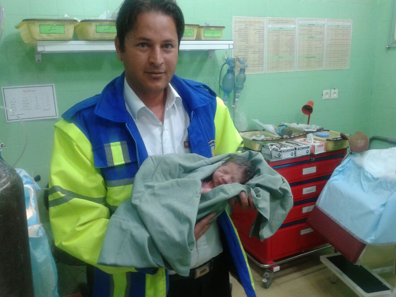 نوزادی بر روی دست تکنسین اورژانس چشم به جهان گشود