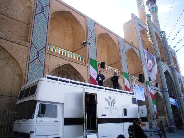 تلاش همكاران صدا و سيماي مركز يزد در انعكاس حضور مردم در راه پيمايي 22 بهمن